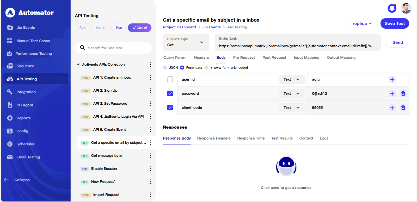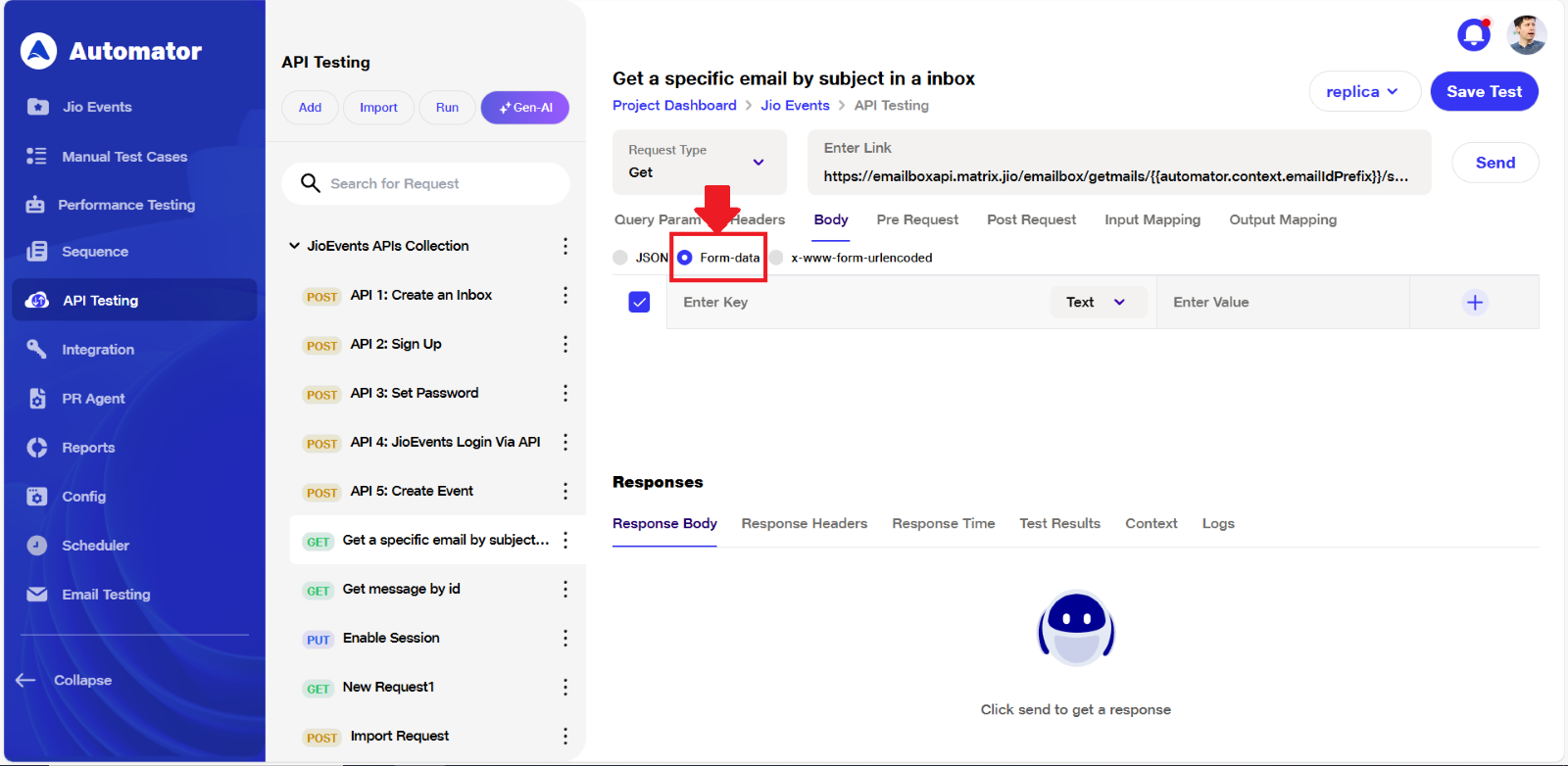 Let's kick off the API testing process using the Automator. Begin by creating a project and navigate to the API Testing module.