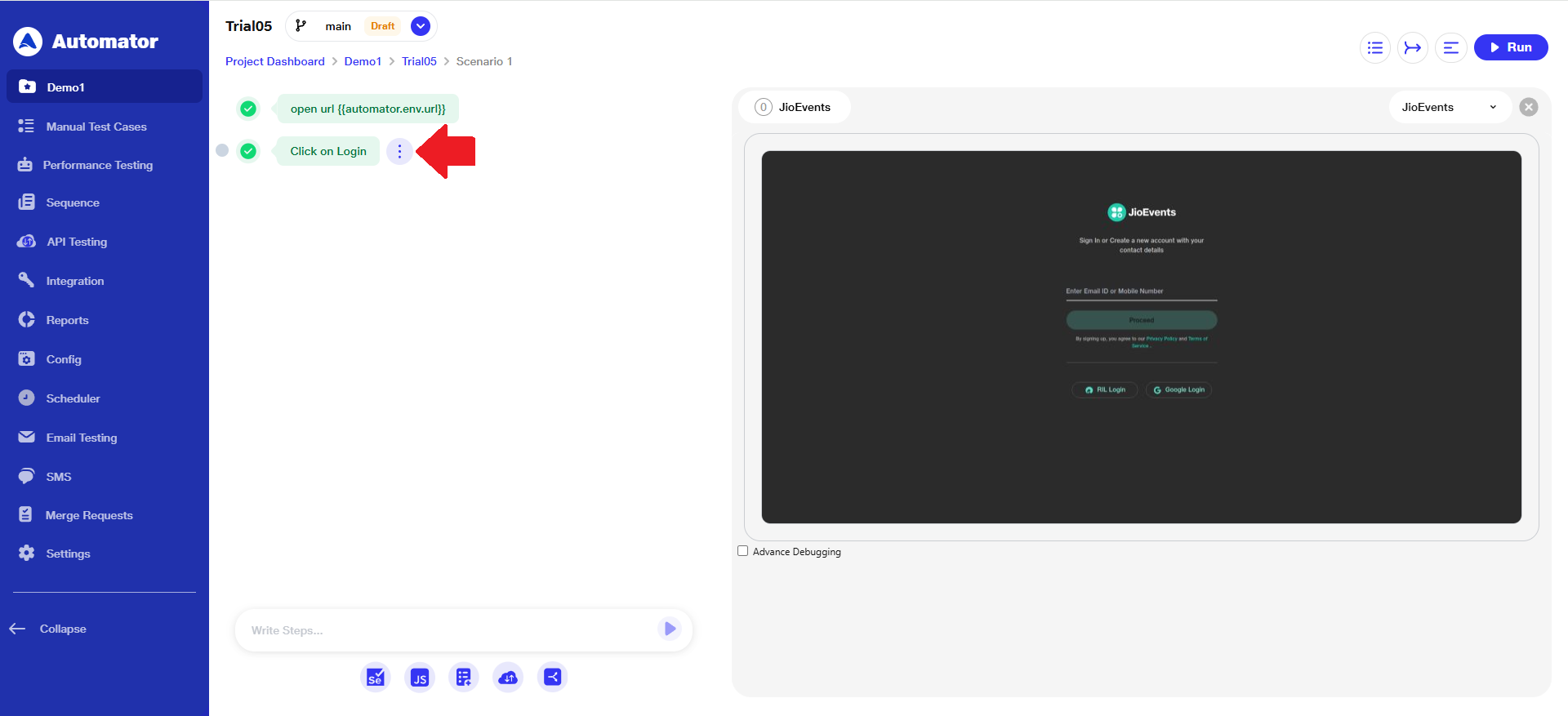ii) Ignore Region: Using free drag, users can select specific dynamic areas of the UI to be ignored by the AI in future runs. After saving the ignore region, the step will pass despite differences in the ignored area.